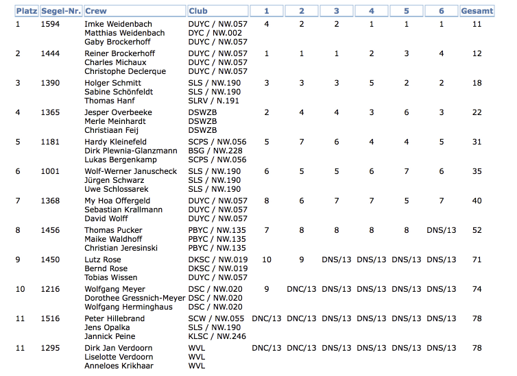Im letzten Lauf des Tages hatte der Wind dann wieder seine Konstanz und nahm stetig zu. Auch die anfängliche Zurückhaltung an der Startlinie war längst verflogen, so dass es bei der 6.Wettfahrt auf einmal richtig eng an der langen Startlinie wurde. Davon ließ sich die Crew auf Jazzy jedoch nicht beirren und segelte auch zum Abschluss des zweiten Tages ihre souveräne Serie an der Spitze des Feldes weiter.