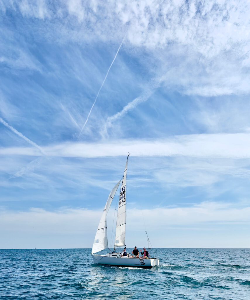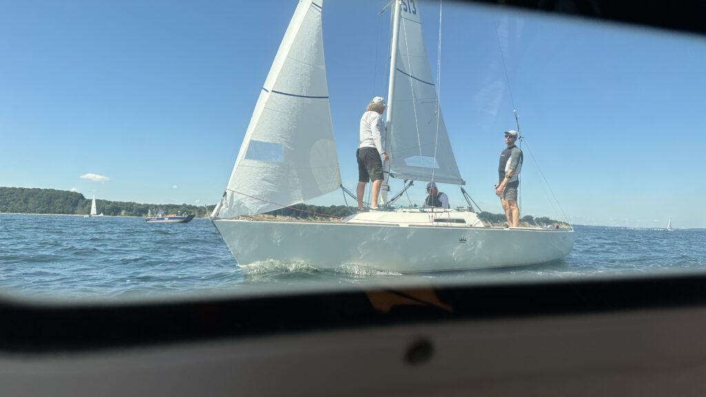 Am Montag ist es dann so weit, der erste Wettfahrttag lockt mit Sonne. Eincremen also nicht vergessen und das im Oktober! Und es verläuft wie erwartet: Nach drei Wettfahren ist Fraporita – die Weltmeistercrew von 2019 und 2023 – ganz vorne und danach wird es enger im Feld. Die drei deutschen Teams schlagen sich passabel und landen in den Top 10. Ganz zufrieden sind wir jedoch nicht, denn bereits das erste Rennen zeigte – da geht etwas. Also ab in den Hafen zur Nachbesprechung – denken wir – und machen die Rechnung aber ohne die Gastgeber. Am Segelclub erwartet uns bereits ein motiviertes Team aus freiwilligen Helfern. Es wird Pasta und Wein gereicht und die Nachbesprechung wird kurzerhand eine Gruppendiskussion zwischen allen Seglern – Die J/22 ist wirklich eine wundervolle Klasse.