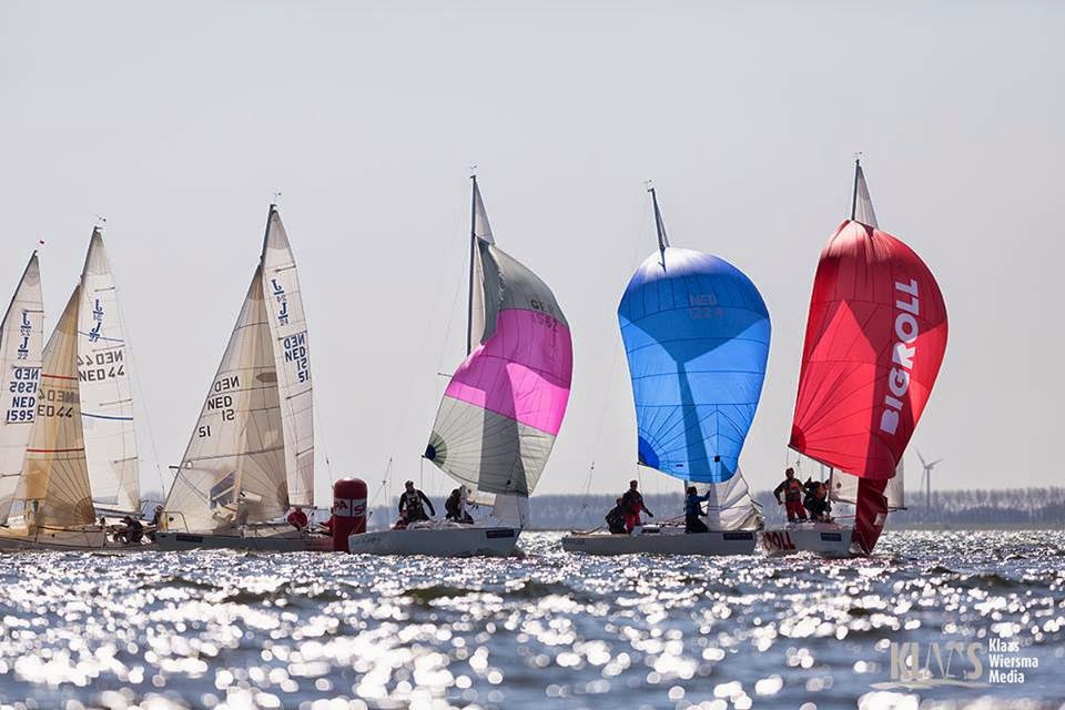 Nach einem ordentlichen und genussvollen Frühstück im Hotel, ging es dann Samstag früh endlich los. Unser Start war auf 10.25h angesetzt. 14 Js warteten ungeduldig auf den 1. Startschuss. Auch Hardy Kleinefeld und seine Crew waren mittlerweile eingetrudelt. Wir starteten zusammen mit den J/24, gleich nach den Melges, MaxFun und den SB20. Da der Wind im Laufe des Tages auf 18kt auffrischen und auf Nord drehen sollte, entschieden wir uns tendentiell für die linke Seite, zumal auch dort ein sympathischer kleiner Windstrich Runde für Runde auf uns wartete.