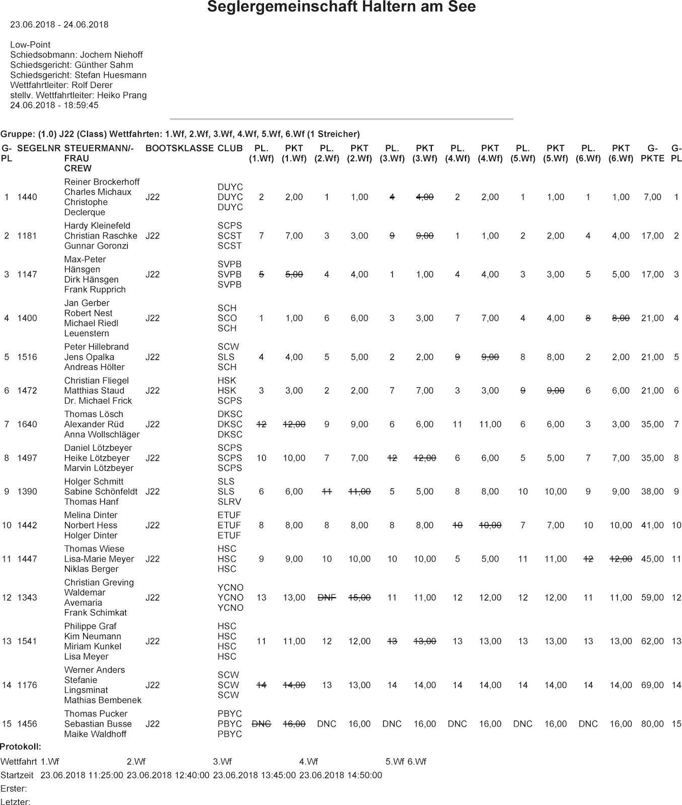 Im Rahmen des Halterner Stausee Festivals fanden am 23. und 24. Juni 2018 die Ranglistenregatten und Landesmeisterschaften NRW in den Klassen Dyas und J/22 statt. Unter der Wettfahrtleitung von Rolf Derer und seinem Team gingen 11 Dyas und 14 J/22 an den Start, um ihre Landesmeister zu finden.