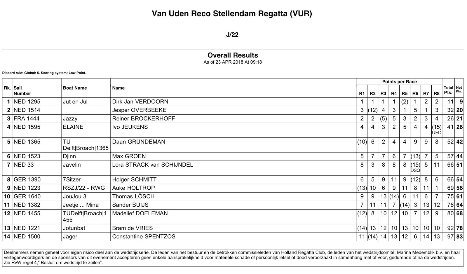 Auf dem Treppchen landete das überragende Team um Dirk Jan Verdoorn, NL (1/1/1/1/(2)/1/2/2) vor Jesper Overbeeke, NL und Reiner Brockerhoff, D/FR.