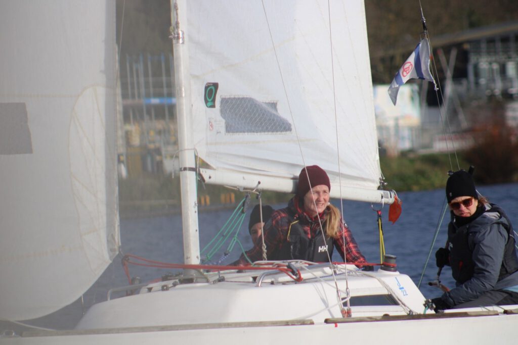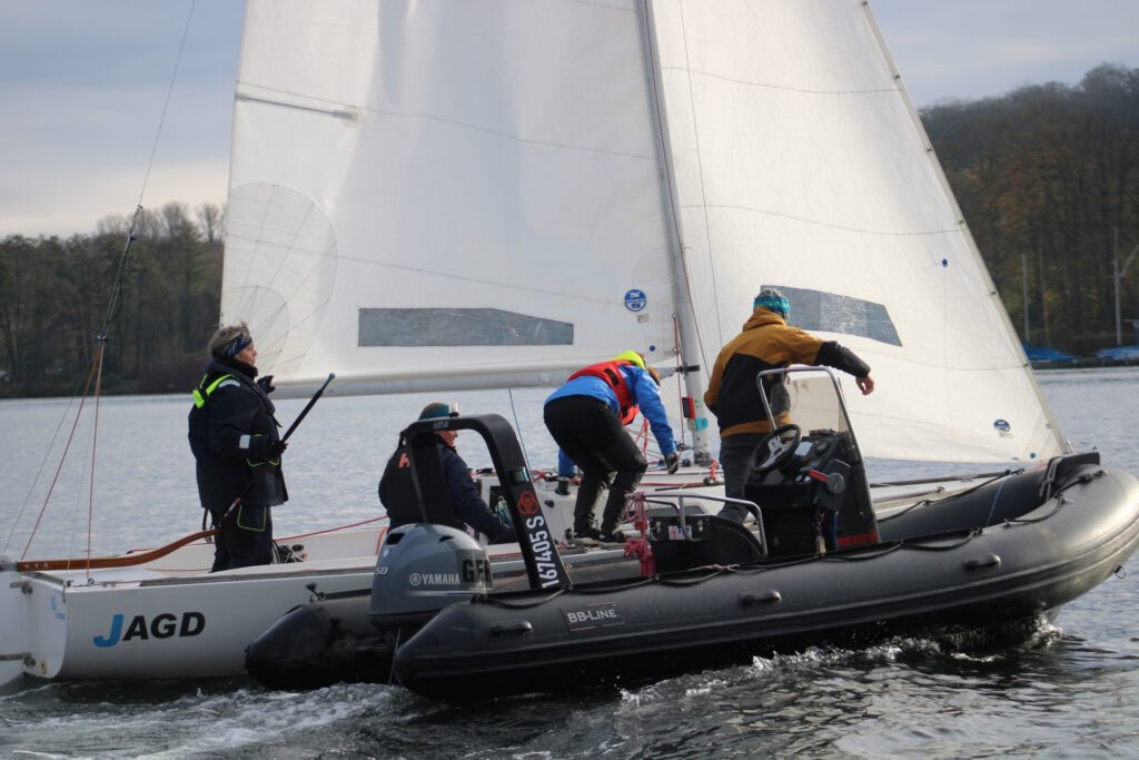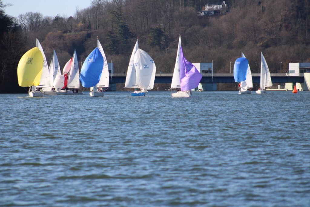Das Wintersegeln am Baldeneysee ist in den letzten Jahren richtig populär geworden. Die J/22-Klasse nutzt die kalte Jahreszeit, um auch bei frostigen Temperaturen und winterlichen Windverhältnissen auf dem Wasser aktiv zu sein. In diesem Jahr waren 11 Teams am Start.