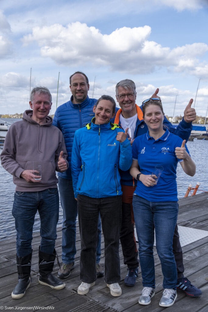 Ein Show down zwischen Jola und J Bender konnten Thorsten, Hannes und Florian am Ende für sich entscheiden; Andreas, Silke und Juliane hatten auch mit dem zweiten Platz wie alle anderen Teams jede Menge Spaß und gute Laune an beiden Tagen. Für Tschakka war es unsere erste Klassenregatta und dann noch erstmalig auf der Alster ein lehrreicher und intensiver Start in die Saison mit vielen Wohlfühlmomenten sowohl beim Land-Team des HSC, als auch bei Euch J/22 Seglerinnen und Seglern. Ein 3. Platz ließ uns sehr zufrieden und happy in die Saison starten.