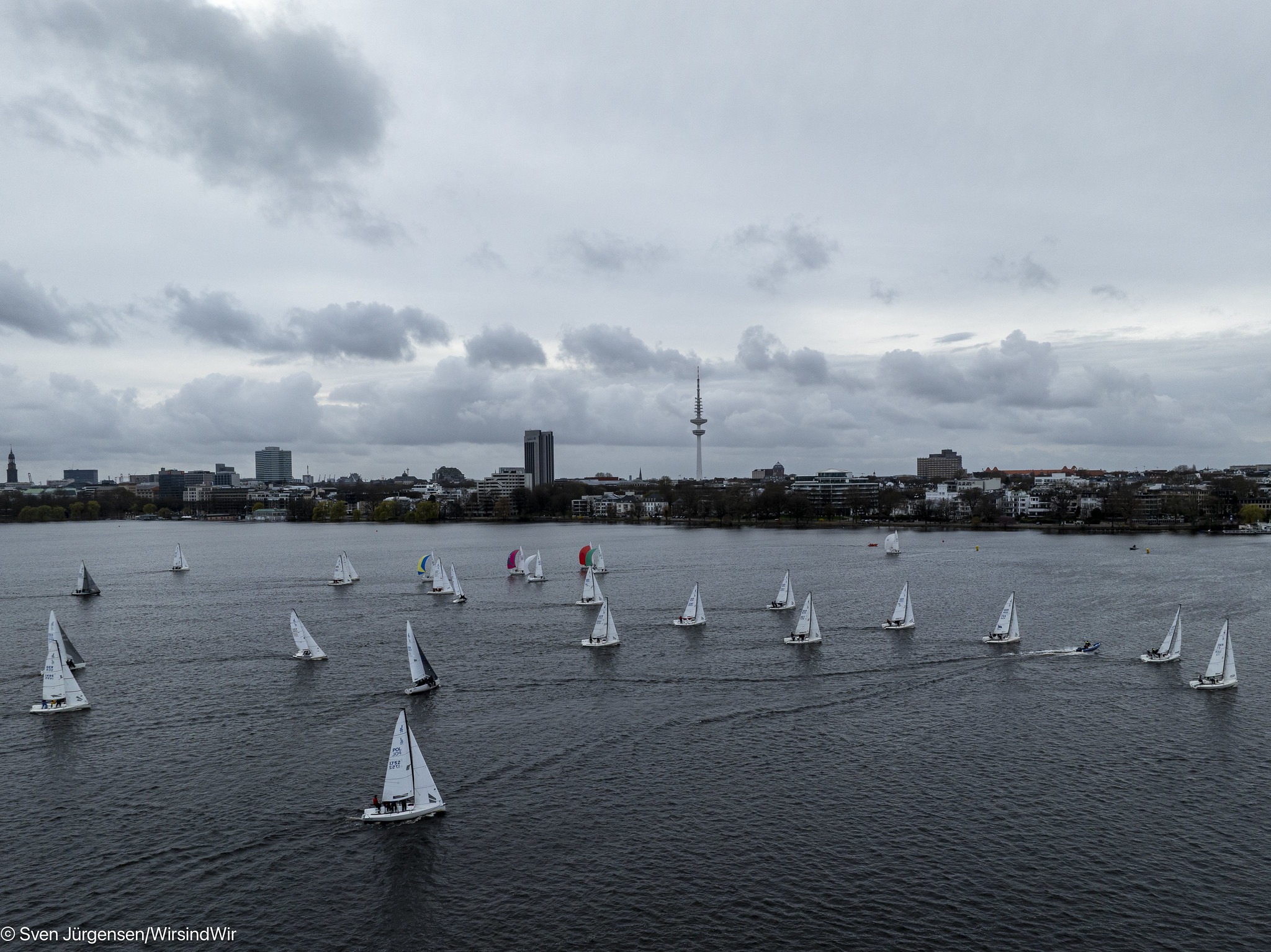 Mit 7 J/22 stellten wir zwar das kleinste Feld, waren aber für die J/24 und J/70 Vorreiter, um vor dem eigenen Start einen Vorgeschmack auf die Alster an diesen beiden Tagen zu bekommen. Nicht nur für die Segler, sondern auch für die Wettfahrtleitung eine Herausforderung, für alle drei Klassen sieben faire Races durchzuführen, was bei der Erfahrung vor Ort perfekt gelang.